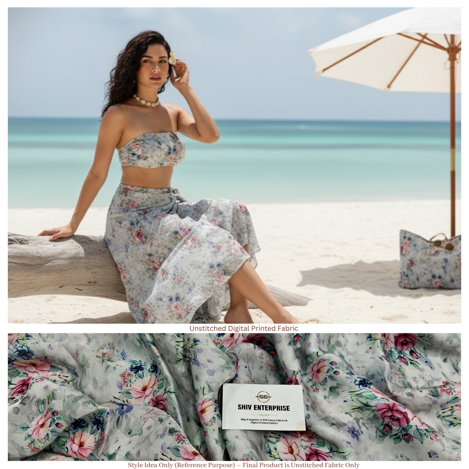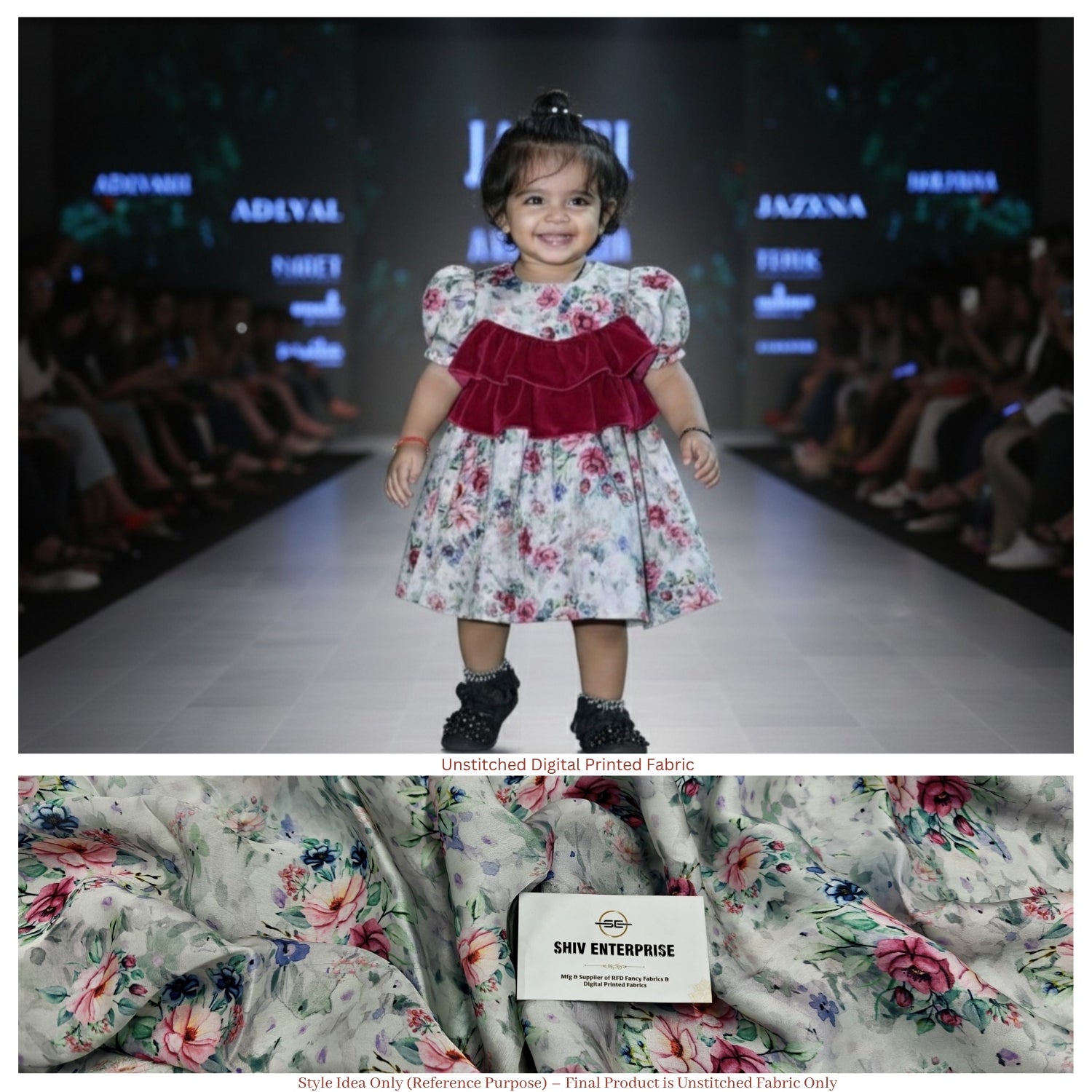 Buy Premium Satin Georgette Digital Printed Fabric for dresses, gowns, kaftans, sarees & kidswear.