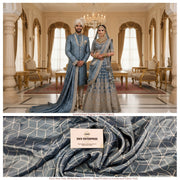 High-quality Chinon digital printed fabric with classy geo pattern. Perfect for sarees, lehengas
