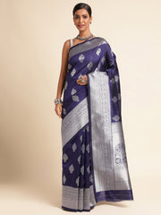 Pashmeena Banarasi silk saree with jacquard motifs and unstitched blouse for festive elegance.