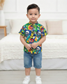 Make a bold fashion statement with the Funky Pop Comic Shirt by MAGNITE, a vibrant, eccentric, and playful piece perfect for adventurous young boys who love colors and cool cartoons. Crafted from premium-quality twill fabric, this shirt offers a smooth, breathable feel while ensuring durability and strength for everyday wear. The all-over funky cartoon print is an explosion of creativity featuring comic-style characters like space explorers, abstract faces, aliens, and graffiti-style graphics. Designed in a splash of bold primary and neon colors—like red, yellow, green, blue, and black—the shirt stands out in any crowd and is sure to turn heads. Tailored with a Chinese collar, short sleeves, and a front button placket, this shirt combines playful design with a touch of sophistication.