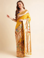 Lime Green & Peacock Yellow Banarasi Silk Saree