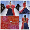 This vibrant ombre pattern blends rich pink–orange tones with modern wave lines, making it ideal for both ethnic and western wear.